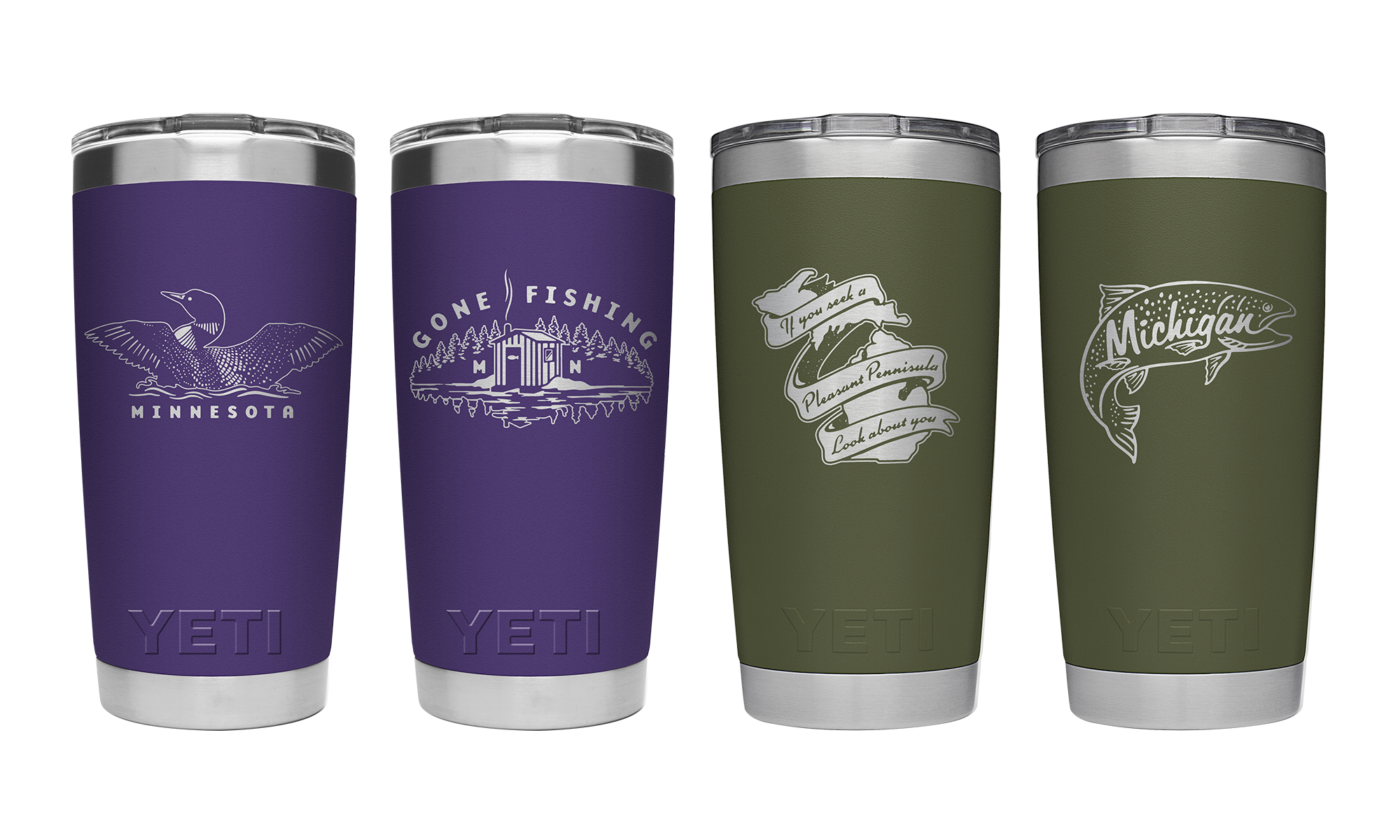 A collection of custom drinkware illustrations and apparel designs developed during my tenure at YETI Coolers, blending bold creativity with the brand's rugged, outdoor spirit.
